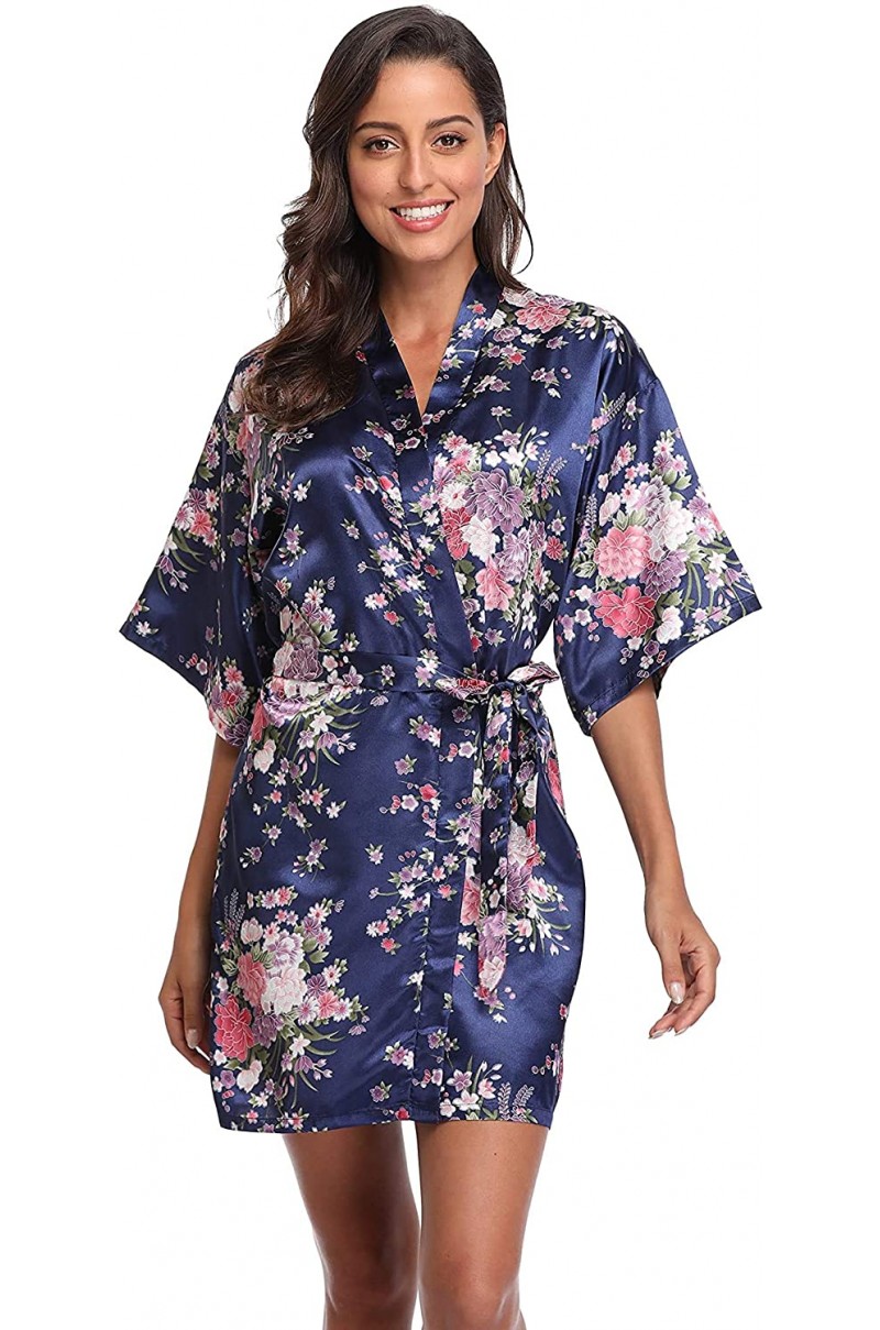 Bata con diseño floral en tonos rojizos, de apariencia sedosa con textura satinada y suave al tacto.