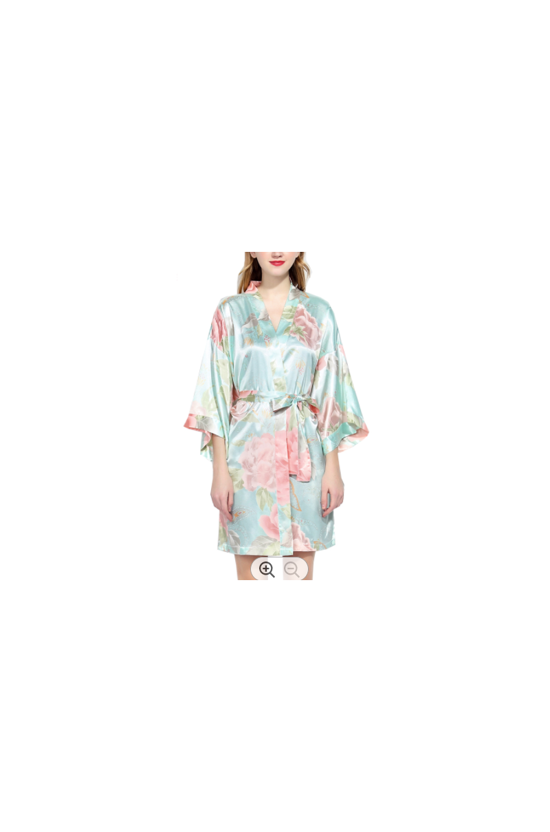 Bata con diseño pastel en tonos verdes, de apariencia sedosa con textura satinada y suave al tacto.